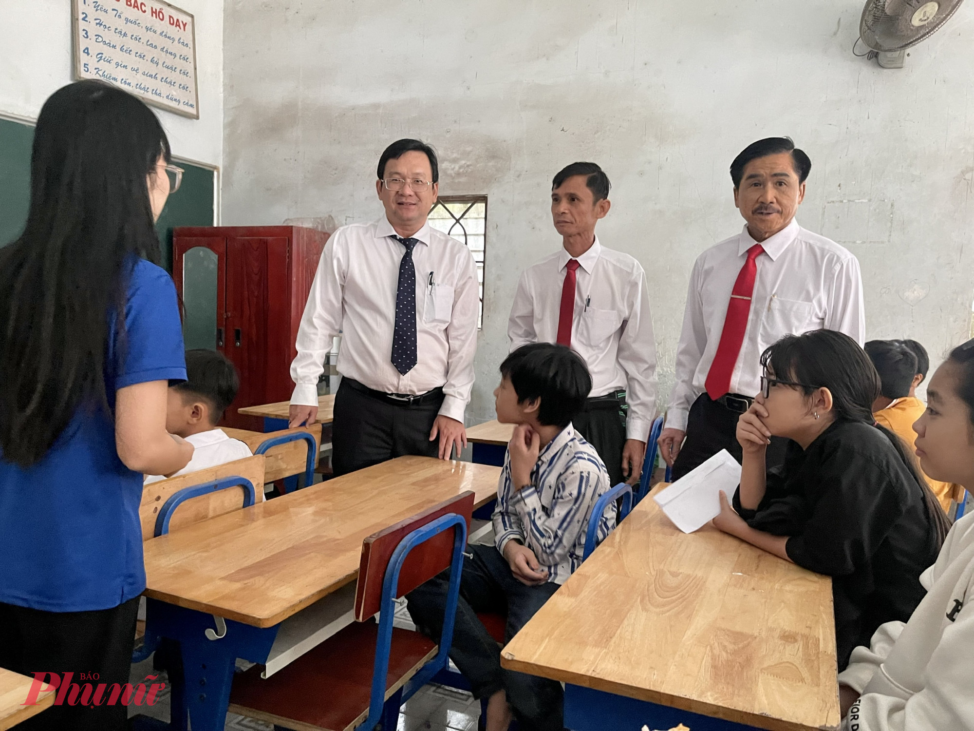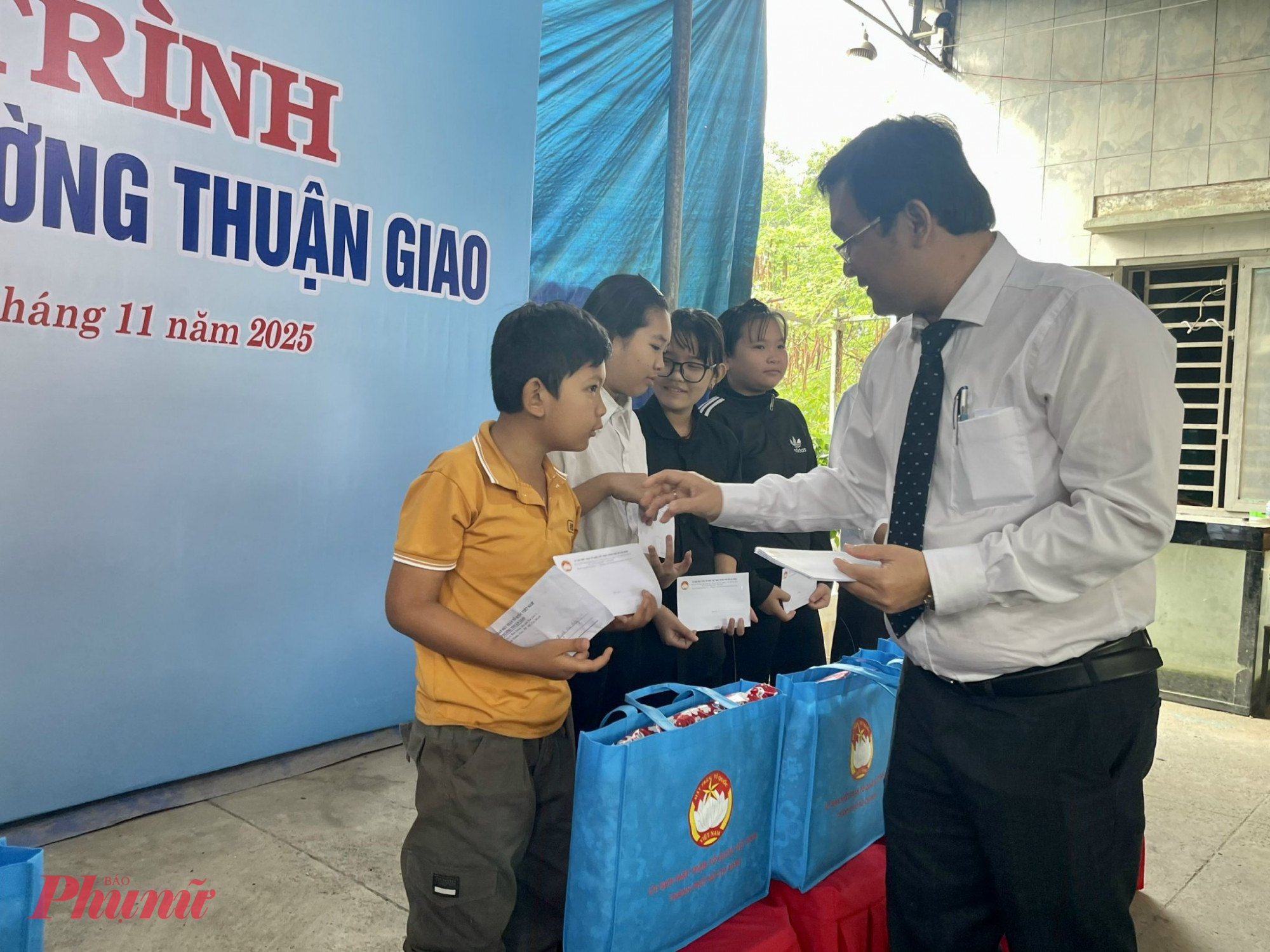 Đoàn cũng đã đến thăm lớp học tình thương tại phường Thuận Giao và trao 30 phần quà trị giá 60 triệu đồng cho các em.  | | Đoàn đến thăm và trao 30 phần quà cho các em tại lớp học tình thương |
