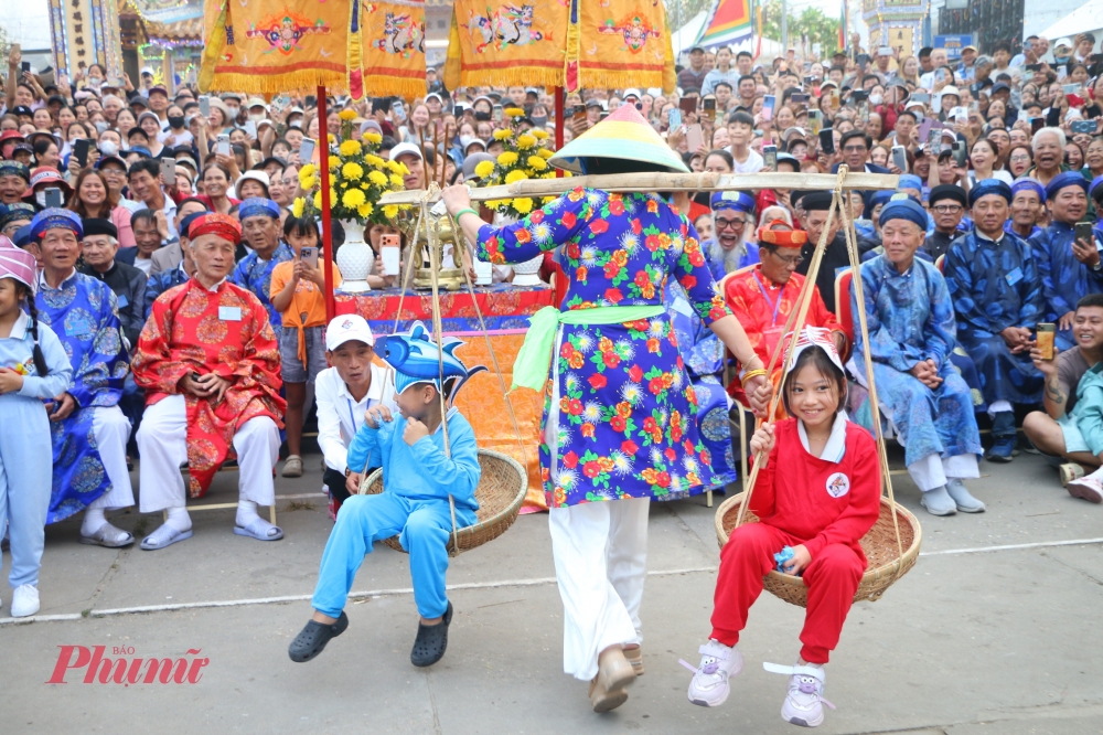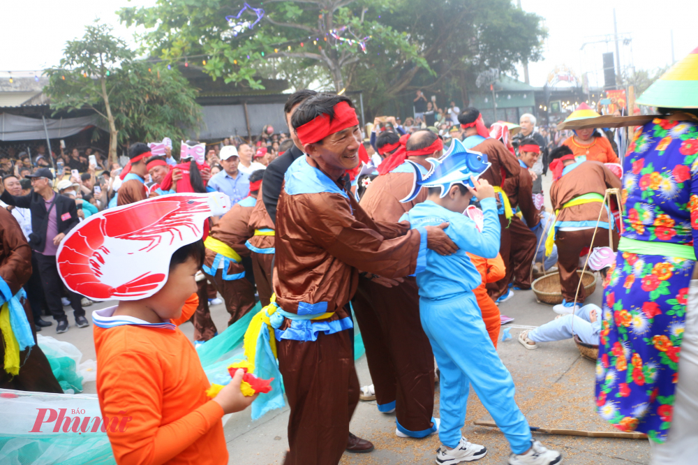 | Trẻ em trong làng hòa cùng vào lễ hội. Việc được trực tiếp tham gia vào các hoạt cảnh giúp các em hiểu hơn về những chuyến biển xưa của các thế hệ cha ông. |