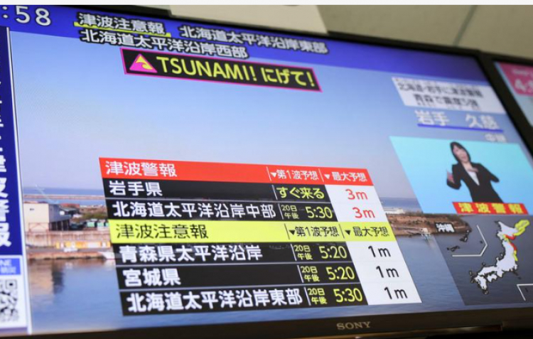 PNO - Ngày 20/4, một trận động đất mạnh 7,5 độ richter đã xảy ra ngoài khơi bờ biển đông bắc Nhật Bản. Cơ quan chức năng đã phát đi cảnh báo sóng thần và kêu gọi người dân khẩn trương sơ tán khỏi các khu vực ven biển.