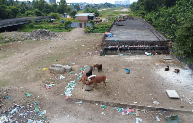 | Đặc biệt, đoạn gần cầu Gò Dưa dù đã xây dựng xong hai nhịp cầu cạn nhưng bị bỏ dở trong thời gian dài, nay trở thành nơi chăn thả bò của người dân xung quanh. |