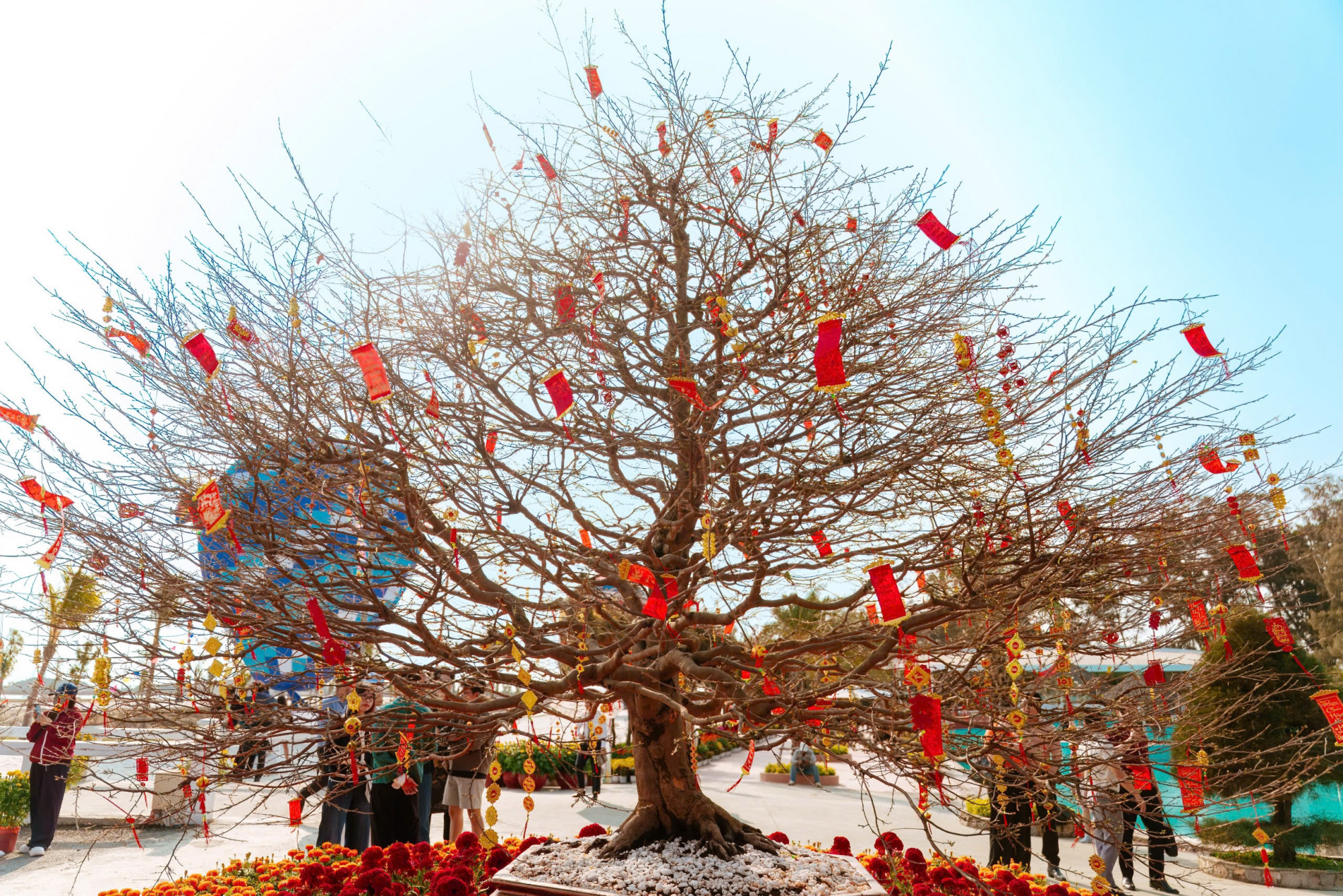| Độc đáo cây lì xì với 2.026 bao lì xì có phần quà may mắn cho khách như voucher dịch vụ ẩm thực, cây xanh… trao tay du khách |