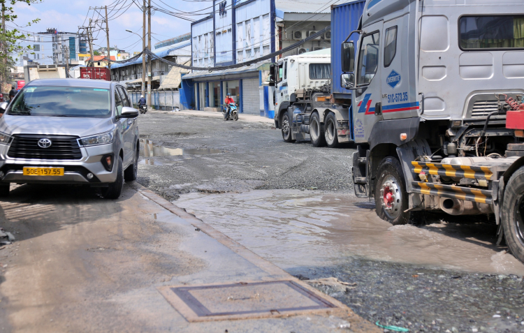 | Lưu lượng xe tải, container ra vào liên tục khiến mặt đường nhanh xuống cấp, trong khi hệ thống thoát nước chưa đáp ứng, dẫn đến tình trạng hư hỏng tái diễn sau mỗi đợt triều cường. |