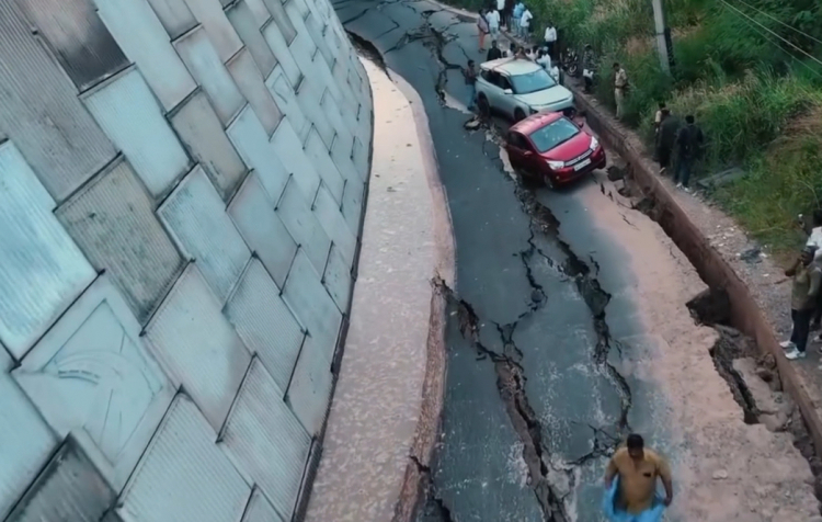 Một đoạn đường cao tốc ở Kottiyam, Kerala, Ấn Độ sụp đổ khiến nhiều ô tô mắc kẹt hôm 6/12. Những hình ảnh ghi lại cho thấy mặt đường nứt toát, tạo nên những đoạn gồ ghề.