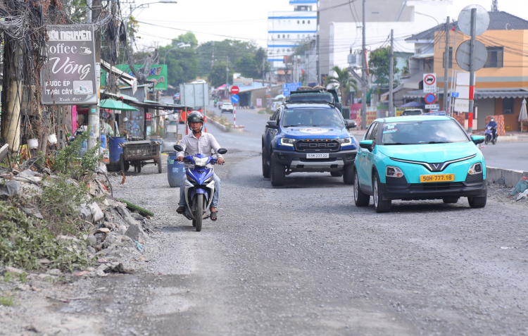 | Nhiều đoạn đường thi công dở dang, mặt đường gồ ghề, xuất hiện ổ gà, ổ voi. |