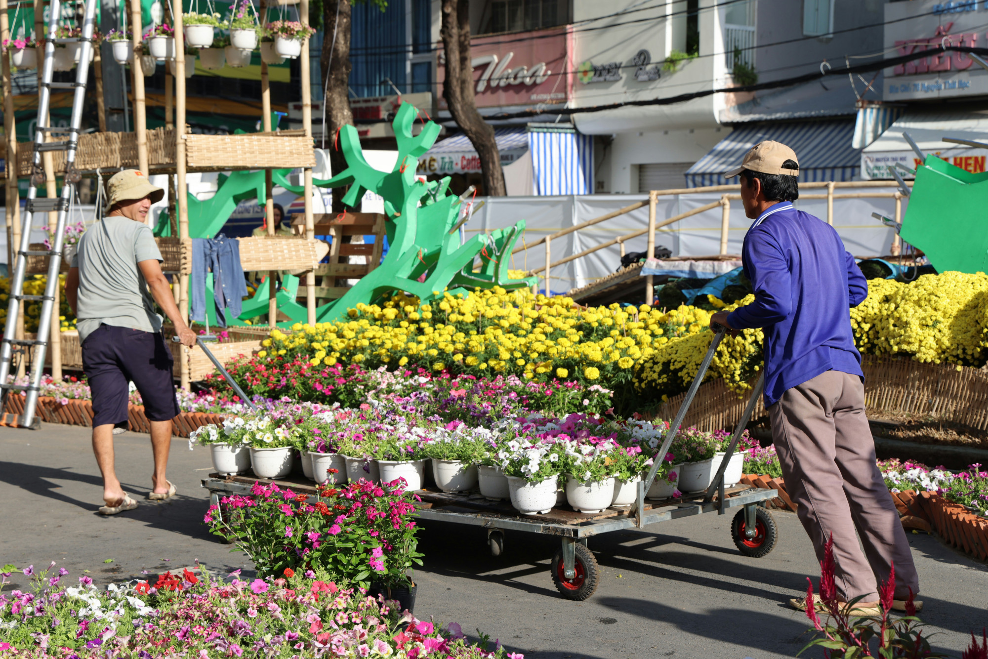 Hàng chục ghe thuyền chở đầy mai, cúc, vạn thọ… tạo nên bức tranh “trên bến dưới thuyền” đặc trưng của miền sông nước Nam Bộ.