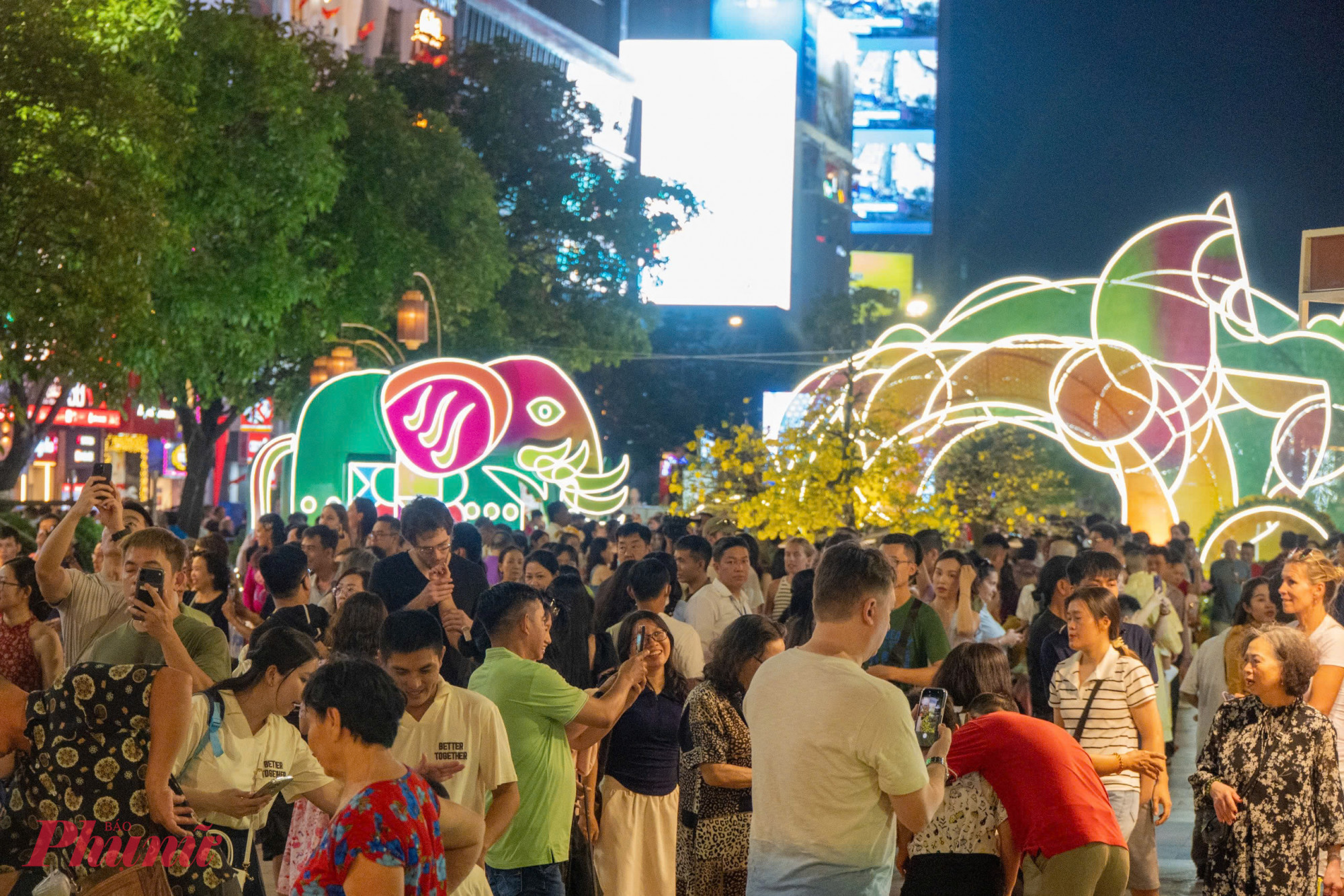 | Đêm khai mạc, đông đảo người dân, du khách đổ về tham quan đường hoa. |