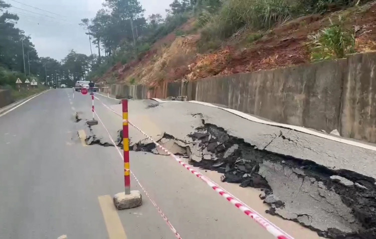 Hiện tuyến đường chỉ đảm bảo lưu thông 1/2 mặt đường. Lực lượng chức năng đã được phân công trực tại vị trí hư hỏng để hướng dẫn, phân luồng.