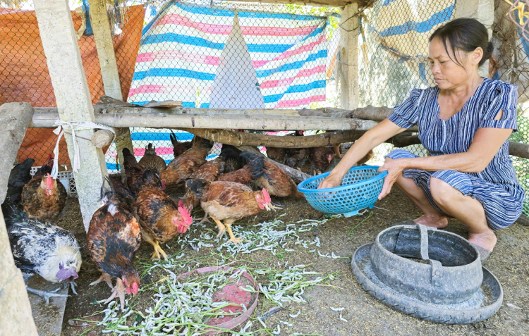 Tỉ mỉ chăm chút đàn gà con, chị Nguyễn Thị Dung nói: “Buồn hoài cũng không ích gì. Chi bằng làm lại từ đầu”. Sau khi sửa chữa, vệ sinh chuồng trại, chị bắt đầu nuôi lại một ít gà con để tận dụng số cám gà còn khô ráo sau bão, lũ. “Trước mắt, tôi thả một ít gà con rồi xoay xở nguồn vốn để tăng đàn dần. Nhưng trước hết, tôi cần làm một hệ thống để có thể nâng hạ chuồng gà lên cao khi gặp lũ. Kinh phí làm hệ thống này rất lớn nhưng tôi cũng phải cố làm bằng được để gà không bị chết hàng loạt như vừa rồi nữa” - chị nêu quyết tâm.