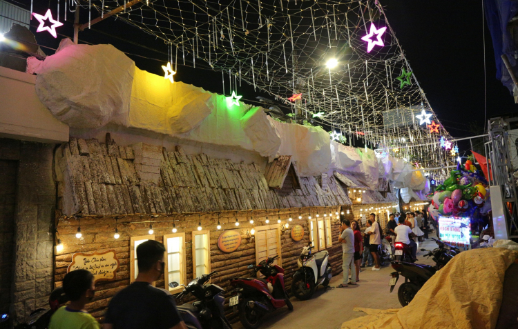| Từ đầu hẻm, tiếng nhạc Giáng sinh rộn ràng vang lên, hòa cùng tiếng cười nói của trẻ nhỏ và bước chân nườm nượp của người tham quan. |