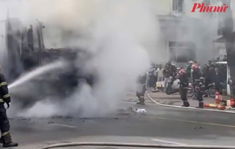 Chiếc xe tải đang lưu thông trên đường Trần Thủ Độ (TP Hà Nội) bất ngờ cháy phần đầu. Lực lượng cứu hỏa nhanh chóng dập tắt ngọn lửa, may mắn không có thương vong.