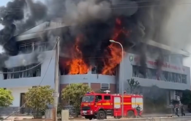 Trưa 12/4, hoả hoạn xảy ra tại tòa nhà 3 tầng của một công ty gỗ ở Hà Tĩnh nằm trên trên đường 26/3, phường Thành Sen.