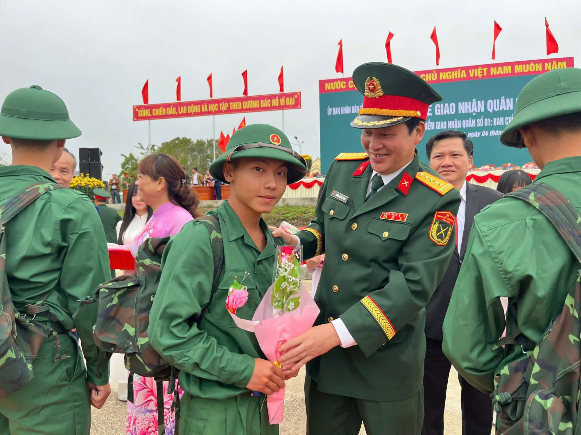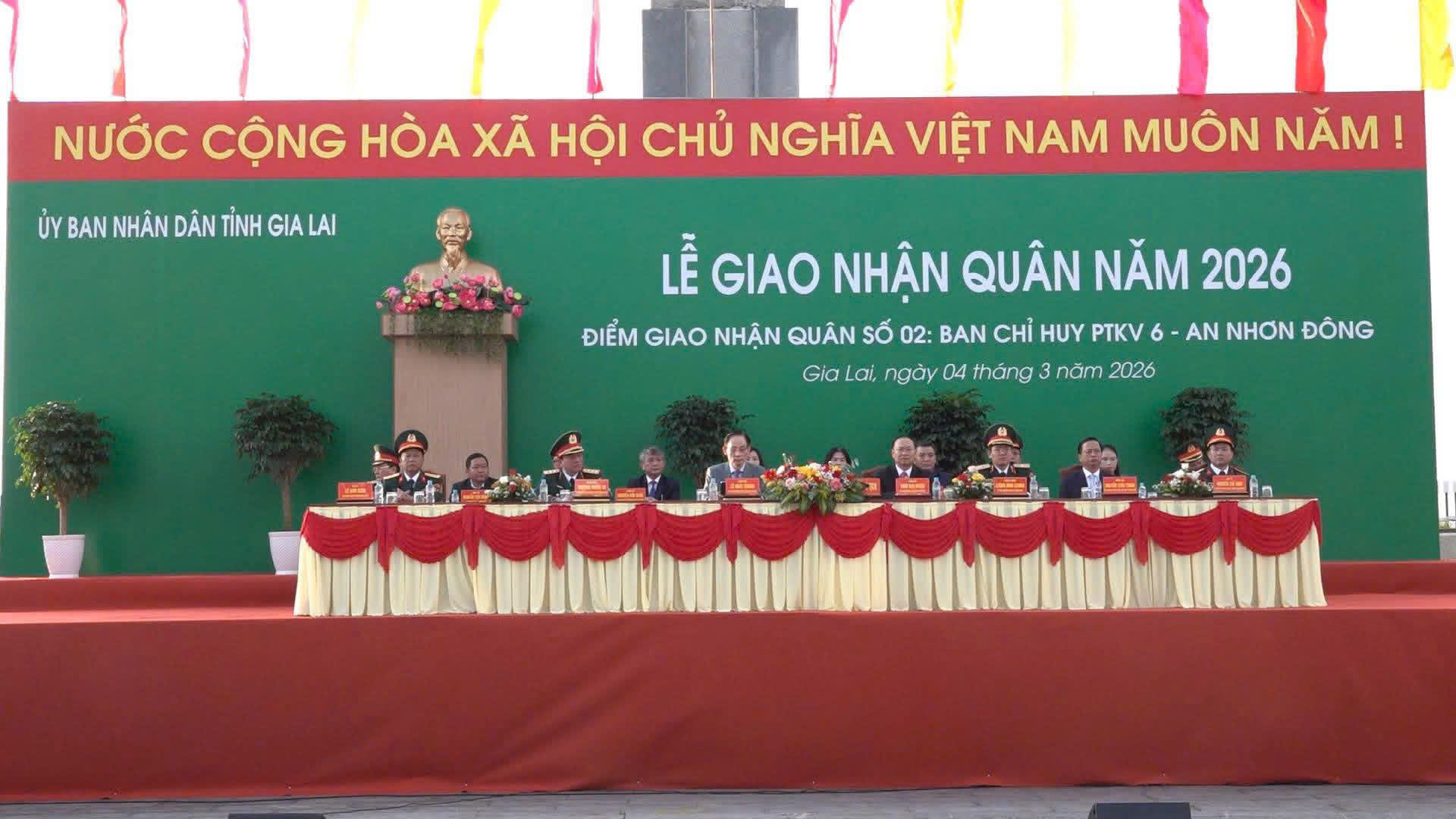 Dự Lễ giao nhận quân tại Quảng trường Chiến Thắng, phường Quy Nhơn, tỉnh Gia Lai có ông Lê Hoài Trung - Ủy viên Bộ Chính trị, Bộ trưởng Bộ Ngoại giao; Thượng tướng Trương Thiên Tô - Ủy viên Trung ương Đảng, Phó Chủ nhiệm Tổng cục Chính trị QĐND Việt Nam; ông Thái Đại Ngọc - Ủy viên Trung ương Đảng, Bí thư Tỉnh ủy Gia Lai; Thiếu tướng Lương Đình Chung - Bí thư Đảng ủy, Chính ủy Quân khu 5, cùng đại biểu Ban ngành Trung ương, địa phương, lãnh đạo đơn vị giao, nhận quân, cùng đông đảo thanh niên nhập ngũ và người thân gia đình.