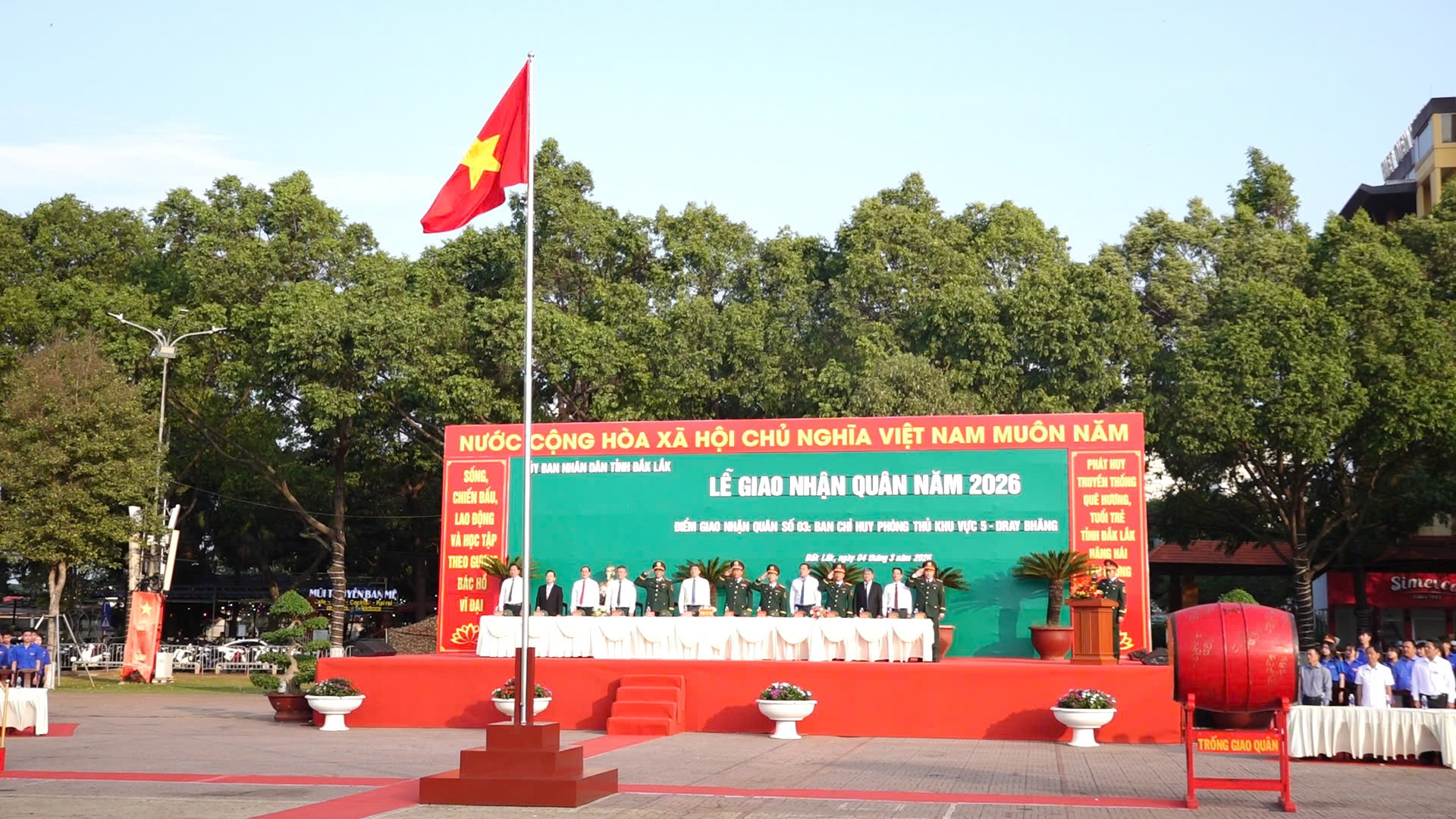 Hòa chung không khí tòng quân của thanh niên cả nước, tại điểm giao nhận quân số 3, Ban CHPTKV 5 - Dray Bhăng, UBND tỉnh Đắk Lắk đã tổ chức Lễ giao nhận quân trang trọng và ấm áp. Tham dự buổi lễ có Thiếu tướng Trần Thanh Hải - Ủy viên Ban Thường vụ Đảng ủy, Phó tư lệnh Quân khu 5.