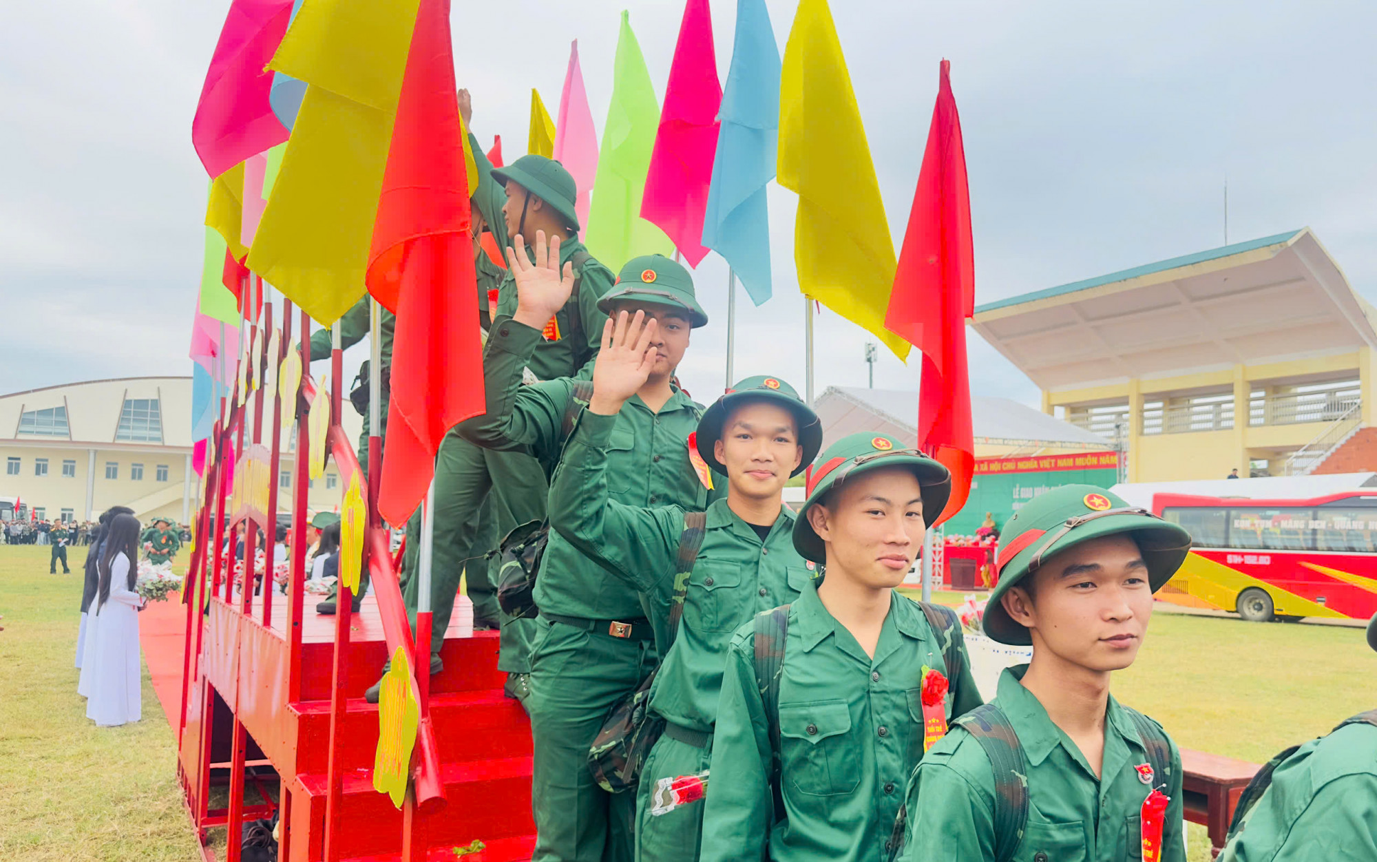 | Thanh niên Quảng Ngãi hăng hái lên đường nhập ngũ - Ảnh: Phạm Hùng |
