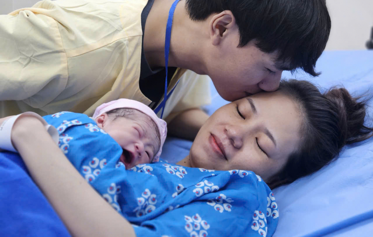 | Xúc động khi tự tay cắt dây rốn cho con, anh Hưng chia sẻ: "Vợ tôi được dự sinh vào ngày 30/12, nhưng đến ngày 31 mới có dấu sinh nên vào bệnh viện. Tôi rất bất ngờ khi con chào đời đúng 0g ngày 1/1/2026. Tôi hạnh phúc lắm". |