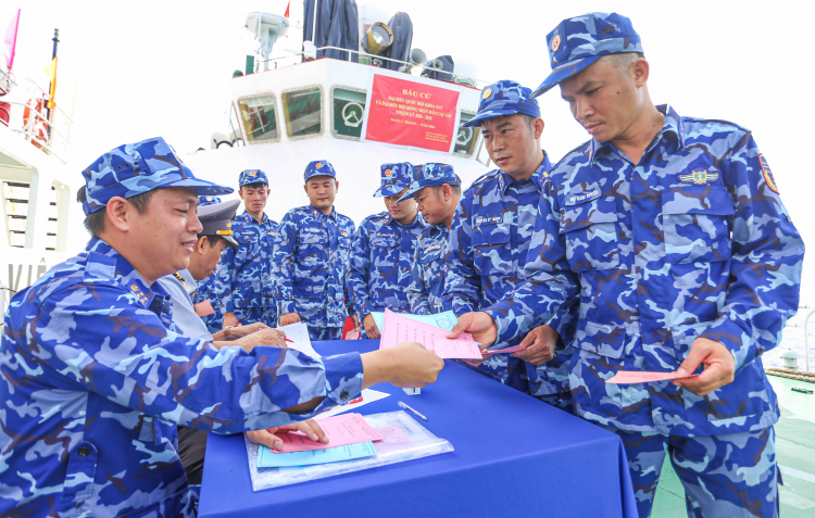 PNO - Một buổi sáng mưa dông, tiếng còi tàu KN 260 vang lên giữa cầu cảng Chi đội Kiểm ngư số 2, báo hiệu chuyến hải trình đặc biệt bắt đầu. Con tàu rẽ sóng ra khơi, mang theo thùng phiếu của tổ bầu cử số 10 hướng tới các tàu đang thực hiện nhiệm vụ trên vùng biển phía Nam của Tổ quốc.