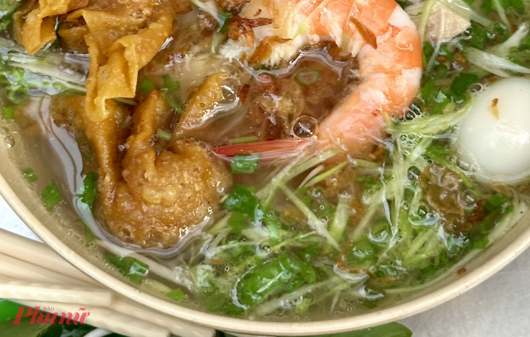 PNO - Một tô hủ tiếu ở đây không phải kiểu “ăn cho vui”. Tô to, sâu lòng, topping nhìn đã thấy no con mắt: gà xé, tôm, bò viên, trứng cút ...