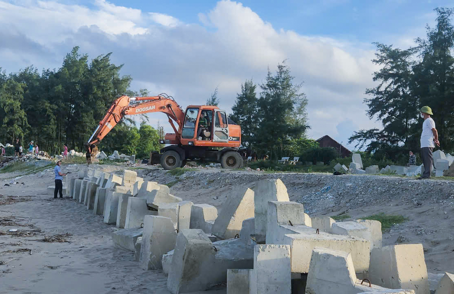 PNO - Để hạn chế sạt lở bờ biển lấn sâu vào đất liền, hàng trăm người ở xã Đan Hải (tỉnh Hà Tĩnh) đã được huy động gia cố lại các vị trí xung yếu trước khi bão Kajiki đổ bộ.