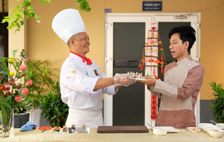 Chả giò cá hồi là lựa chọn đổi vị hoàn hảo cho mùng Một tết. Sự kết hợp khéo léo giữa nhân cá béo nhẹ cùng rau củ tươi ngon, bao bọc bởi lớp vỏ chiên vàng giòn rụm, tạo nên một món ăn lạ miệng, hợp khẩu vị nhiều thế hệ trong gia đình.