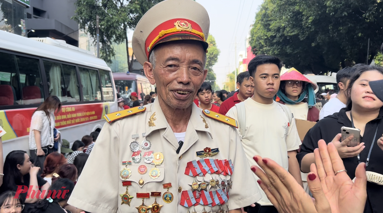 Khi cựu chiến binh Nguyễn Văn Tĩnh đi ngược ra từ khán đài chính, giữa dòng người, ông quay phim và thỉnh thoảng chọc ghẹo người xem bằng cách đưa camera lại gần. Không ai khó chịu mà thậm chí còn hợp tác với ống kính. Thời điểm chúng tôi phỏng vấn, nhiều người trẻ, nhiều gia đình trẻ có con nhỏ tập trung xung quanh. Có người quay phim, có người chỉ im lặng đứng nghe nhưng kết thúc cuộc trò chuyện ngắn, tất cả vỗ tay và xin chụp ảnh với người cựu binh già.