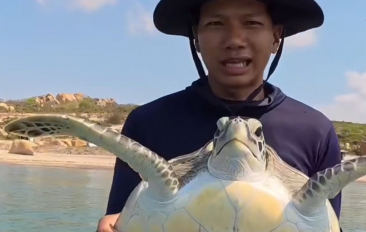 Ngày 16/4, anh Nguyễn Anh Tươi cùng một số người phát hiện một cá thể rùa biển mắc lưới tại xã Liên Hương, tỉnh Lâm Đồng. Họ gỡ lưới, vệ sinh cho rùa, sau đó thả rùa trở lại biển.