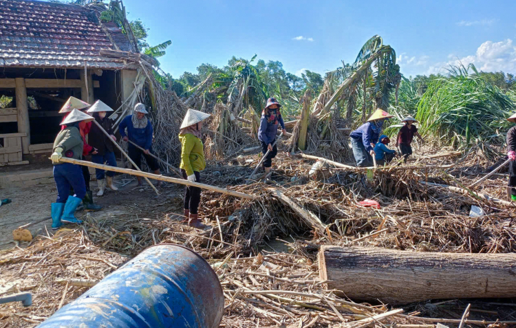 PNO - Lũ rút, các chị em phụ nữ xã Nghĩa Hành thành lập các đội, mang theo dụng đến hỗ trợ người dân “tìm” tài sản, dọn dẹp nhà cửa.