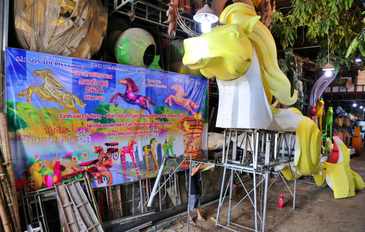 | Khoảng 2 tháng qua, xưởng chế tác linh vật cho đường hoa Nguyễn Huệ Tết Bính Ngọ 2026 của nghệ nhân Văn Tòng nhộn nhịp ngày đêm. Đặc biệt, những ngày gần đây, không khí làm việc càng tất bật hơn khi sắp đến ngày thi công đường hoa Nguyễn Huệ. |