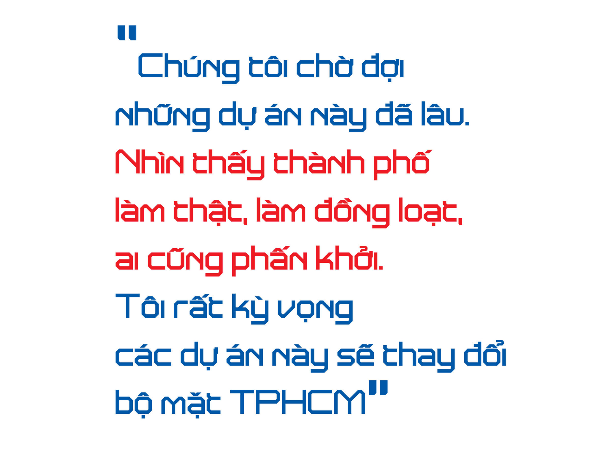 “Chúng tôi chờ đợi những dự án này đã lâu. Nhìn thấy thành phố làm thật, làm đồng loạt, ai cũng phấn khởi. Tôi rất kỳ vọng các dự án này sẽ thay đổi bộ mặt TPHCM” - chị Đào Huyền Anh (phường Sài Gòn) chia sẻ khi theo dõi lễ khởi công tuyến metro số 2. Cảm xúc ấy cũng hiện hữu ở khu Nam, nơi người dân Nhà Bè, Cần Giờ mong mỏi từng ngày chuyến phà Bình Khánh được thay thế bằng một cây cầu hiện đại, hay ở khu Đông, nơi giấc mơ về một trung tâm thể thao tầm cỡ quốc gia tại Rạch Chiếc đang dần thành hình.