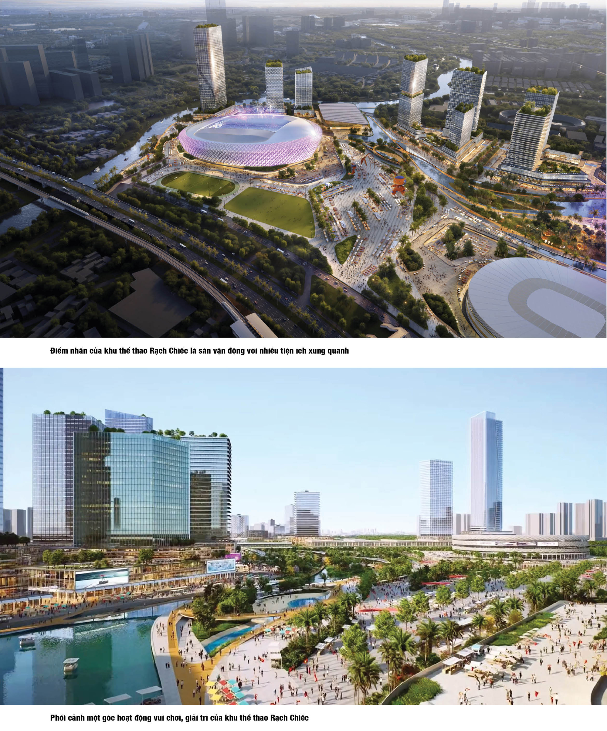 Trọng tâm của toàn khu là sân vận động trung tâm có sức chứa lên đến 70.000 chỗ ngồi trên diện tích 24ha. Khi hoàn thành, đây sẽ là sân vận động lớn nhất từ trước đến nay của TPHCM, đồng thời nằm trong nhóm các công trình thể thao có quy mô hàng đầu khu vực Đông Nam Á, tiệm cận với nhiều sân vận động biểu tượng trên thế giới.