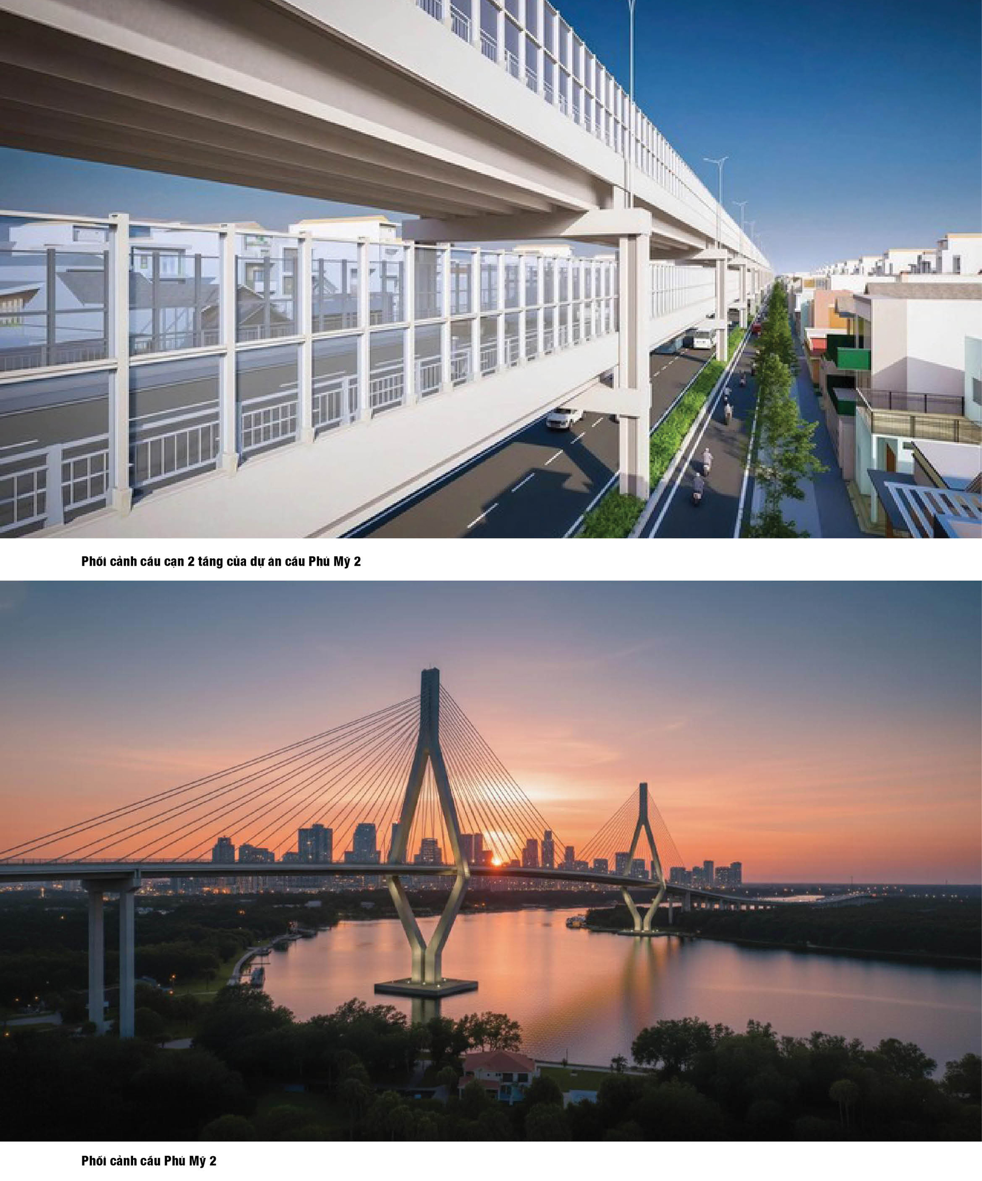 Bên cạnh metro và khu liên hợp thể thao, dự án cầu Phú Mỹ 2 và cầu Cần Giờ cũng mang ý nghĩa chiến lược đặc biệt. Cả hai được triển khai theo hình thức PPP, hợp đồng BT, với tổng mức đầu tư lần lượt khoảng 23.186 tỉ đồng và hơn 13.200 tỉ đồng, do Masterise Group làm nhà đầu tư, dự kiến hoàn thành vào năm 2029.