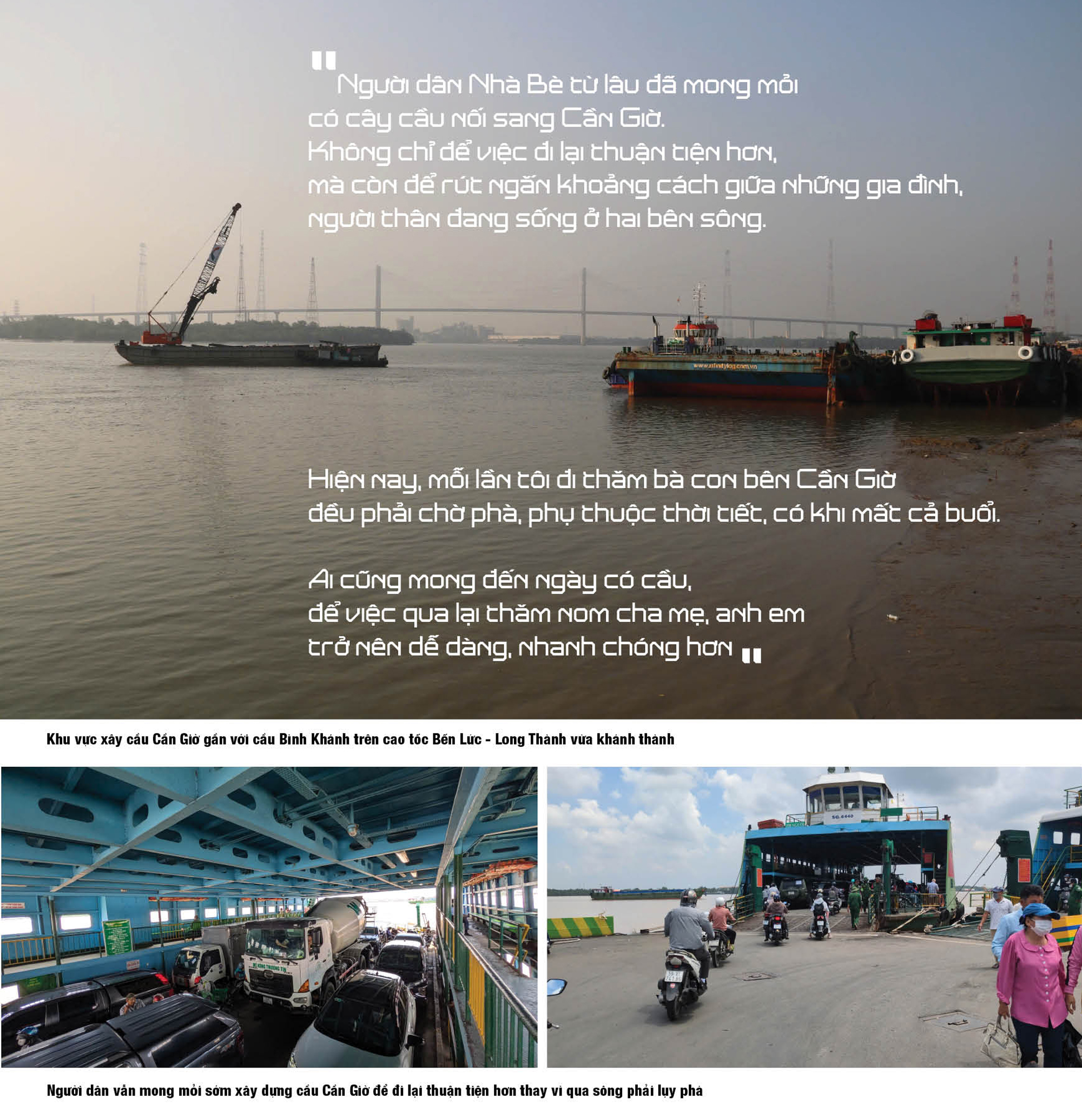 Bà Nguyễn Thị Mân (50 tuổi, người dân xã Nhà Bè) phấn khởi: “Người dân Nhà Bè từ lâu đã mong mỏi có cây cầu nối sang Cần Giờ. Không chỉ để việc đi lại thuận tiện hơn, mà còn để rút ngắn khoảng cách giữa những gia đình, người thân đang sống ở hai bên sông. Hiện nay, mỗi lần tôi đi thăm bà con bên Cần Giờ đều phải chờ phà, phụ thuộc thời tiết, có khi mất cả buổi. Ai cũng mong đến ngày có cầu, để việc qua lại thăm nom cha mẹ, anh em trở nên dễ dàng, nhanh chóng hơn”.