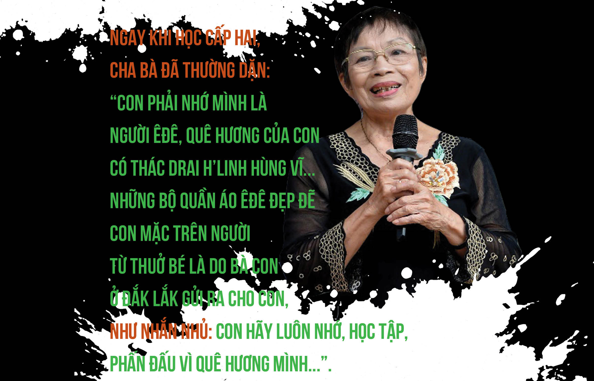 “Cha tôi là bác sĩ, nhà giáo nhân dân, từng làm Thứ trưởng Bộ Giáo dục (nay là Bộ Giáo dục - Đào tạo), Đại biểu Quốc hội suốt chín khóa liên tiếp. Chưa bao giờ ông quên mình là con của buôn làng. Cả đời ông sống và làm tất cả vì đồng bào Tây Nguyên. Trước tấm gương lớn là cha, tôi càng thấy mình phải có trách nhiệm với cộng đồng”, bà Linh Nga kể.