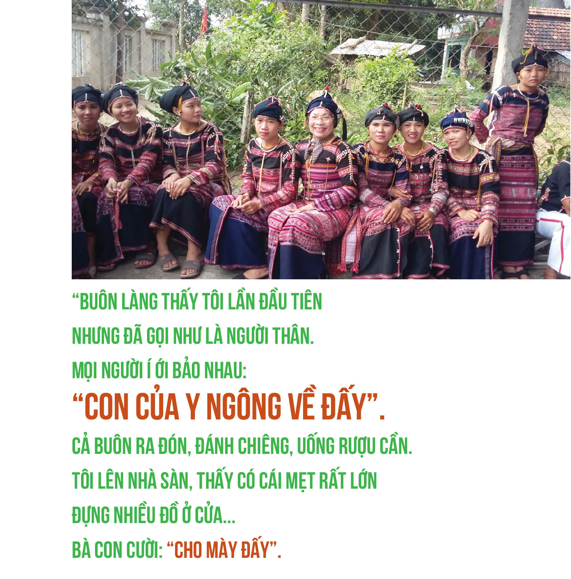 “Trả nợ cho đất mẹ” như lời tự sự của bà, từ tuổi xuân đến khi tóc bạc, từ niềm vui đến nỗi lo mai một, từ đam mê nghiên cứu đến những giọt nước mắt khi chứng kiến một điệu chiêng, một lời khan dần phai theo thời gian.