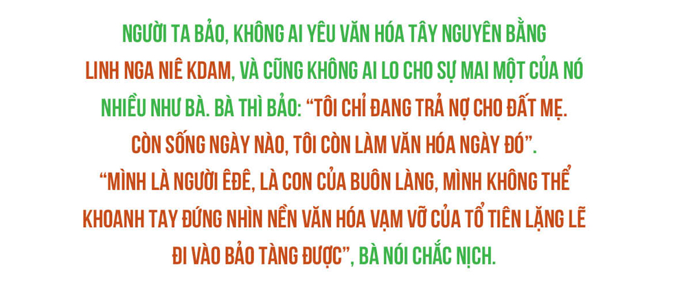 Với nhà nghiên cứu Linh Nga Niê Kdam, văn hóa không chỉ là công trình nghiên cứu khô khan. Nó phải hiện diện sống động trong đời sống hằng ngày. Không phải để trưng bày trong bảo tàng, mà để thở, để sống, để truyền lại cho thế hệ sau.