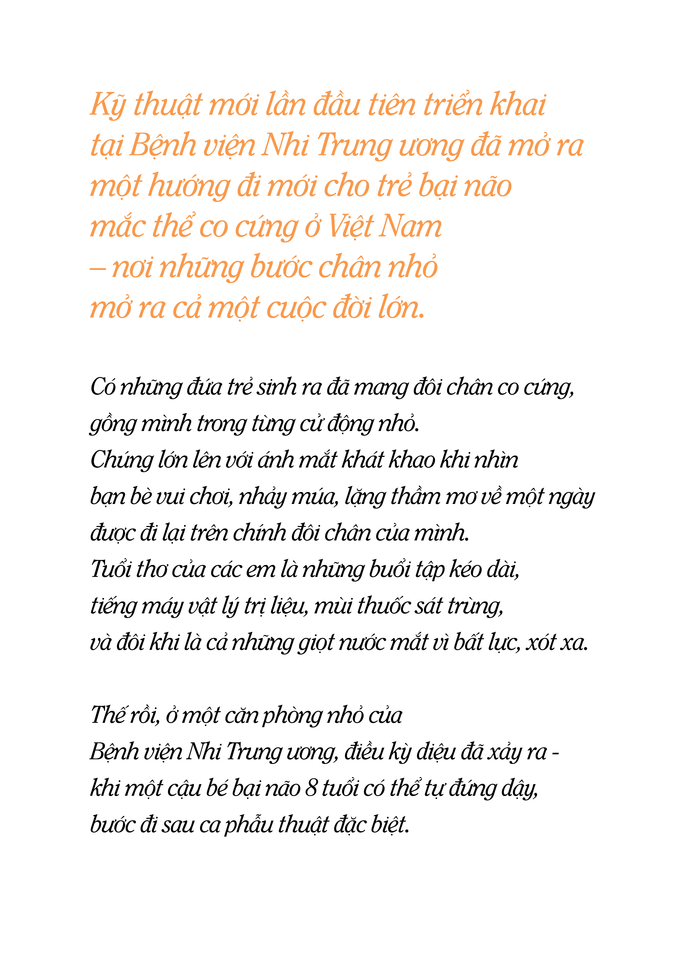 Chỉ vài tuần, vài tháng trước, đôi chân ấy còn co cứng, không thể đứng vững. Giờ đây, bé có thể tự bước đi – điều mà suốt tám năm qua, gia đình chỉ dám gọi là “giấc mơ”.