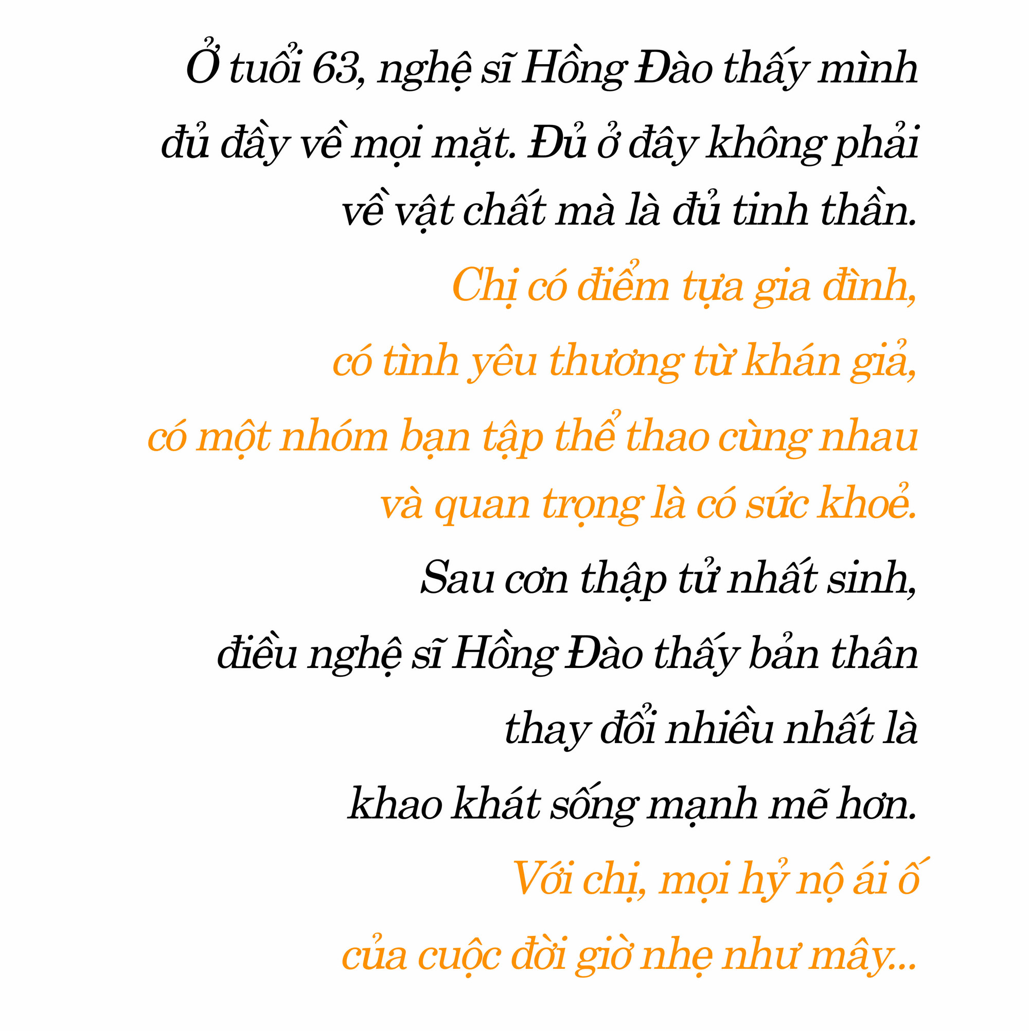 2, 3 năm trở lại, nghệ sĩ Hồng Đào xuất hiện nhiều trên các dự án điện ảnh, có phải biến cố sức khoẻ thôi thúc chị cống hiến nhiều hơn cho nghệ thuật?