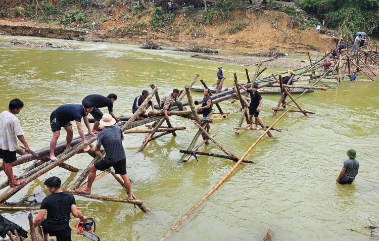 PNO - Sáng 24/10, ông Đậu Đức Truyền - Chủ tịch UBND xã Yên Hòa (tỉnh Nghệ An) - cho biết, lực lượng chức năng xã này và người dân địa phương đang nỗ lực hoàn thành cây cầu tạm bằng tre nứa bắc qua khe Huồi Nguyên để phục vụ nhu cầu đi lại của người dân địa phương.