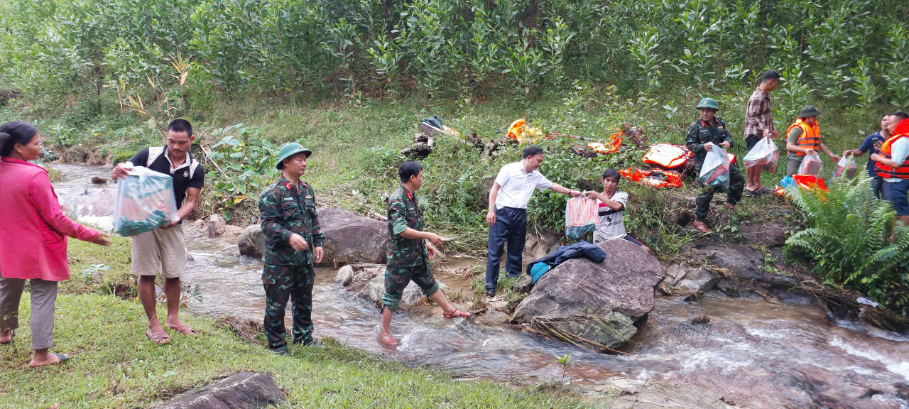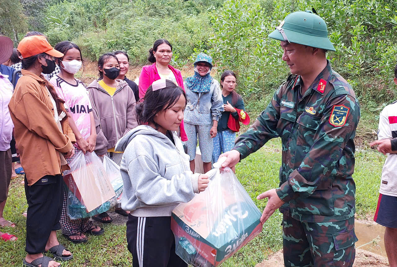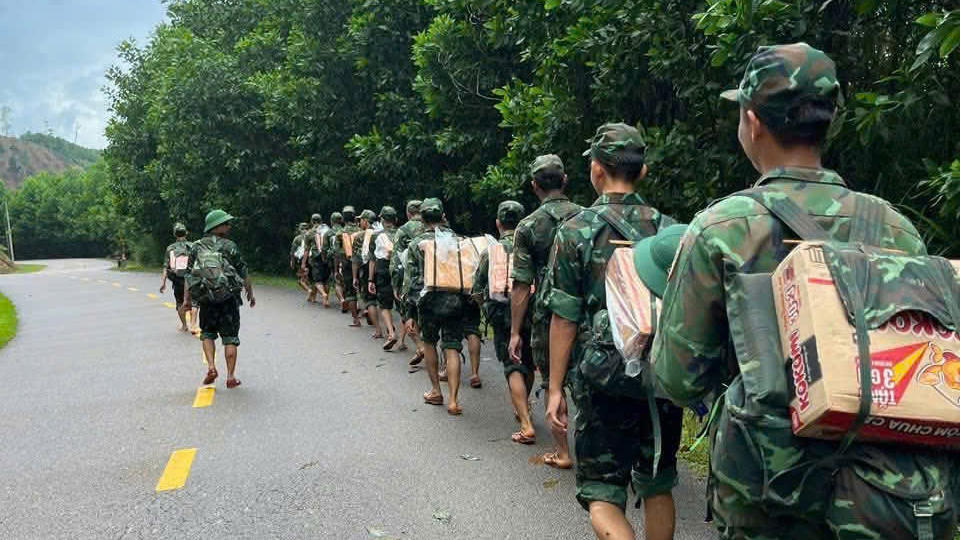 PNO - Cán bộ, chiến sỹ Lữ đoàn 270 (Quân khu 5) tiếp tục hành quân vượt núi, băng qua bùn đất, phối hợp cùng với địa phương và các đơn vị bạn vào các thôn bị cô lập của xã Trà Tân (Đà Nẵng).