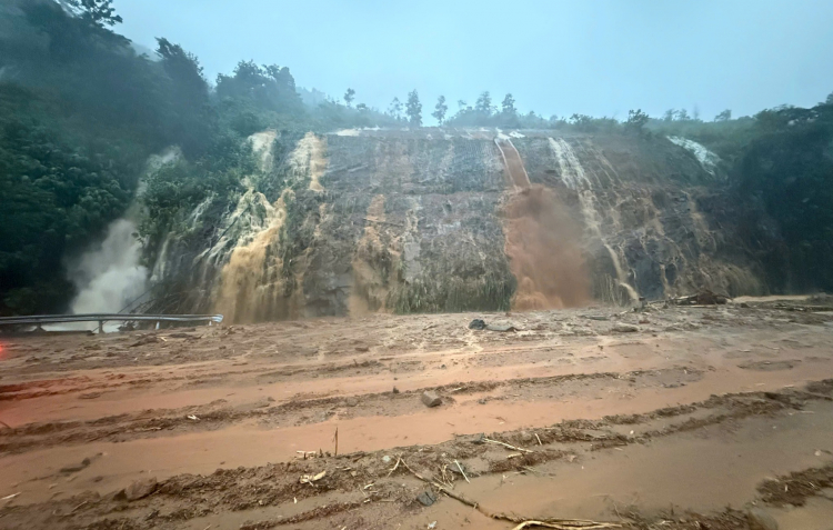 PNO - Sáng nay, một đợt lũ lớn tràn ào ạt qua cao tốc La Sơn - Tuý Loan đoạn qua địa phận Huế. Trong lúc đó tại địa phận Đà Nẵng, mặt đường cao tốc xuất hiện vết nứt kéo dài hàng chục mét.