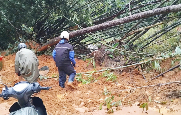 Tình trạng sạt lở cũng xảy ra tại xã Sơn Tây của tỉnh Quảng Ngãi. Nhiều ngày qua, mưa lớn khiến đất đá từ mái taluy dương sạt xuống mặt đường, đặc biệt tại khu vực dốc Ông Phó trên tỉnh lộ 623. UBND xã Sơn Tây đã phối hợp đơn vị quản lý đường bộ dọn dẹp đất đá, dựng rào chắn và cắm biển cảnh báo.