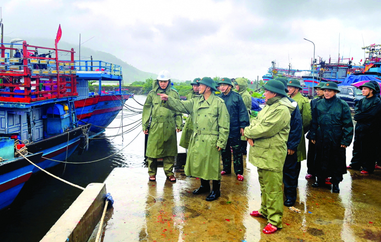 UBND tỉnh đã thành lập 4 tổ tiền tiêu và 5 tổ công tác để chỉ đạo ứng phó bão tại cơ sở, đồng thời huy động lực lượng quân sự, công an, biên phòng và các sở, ngành kiểm tra, rà soát các khu vực xung yếu, kêu gọi hơn 6.400 tàu cá vào nơi neo đậu an toàn và cấm mọi phương tiện ra khơi.