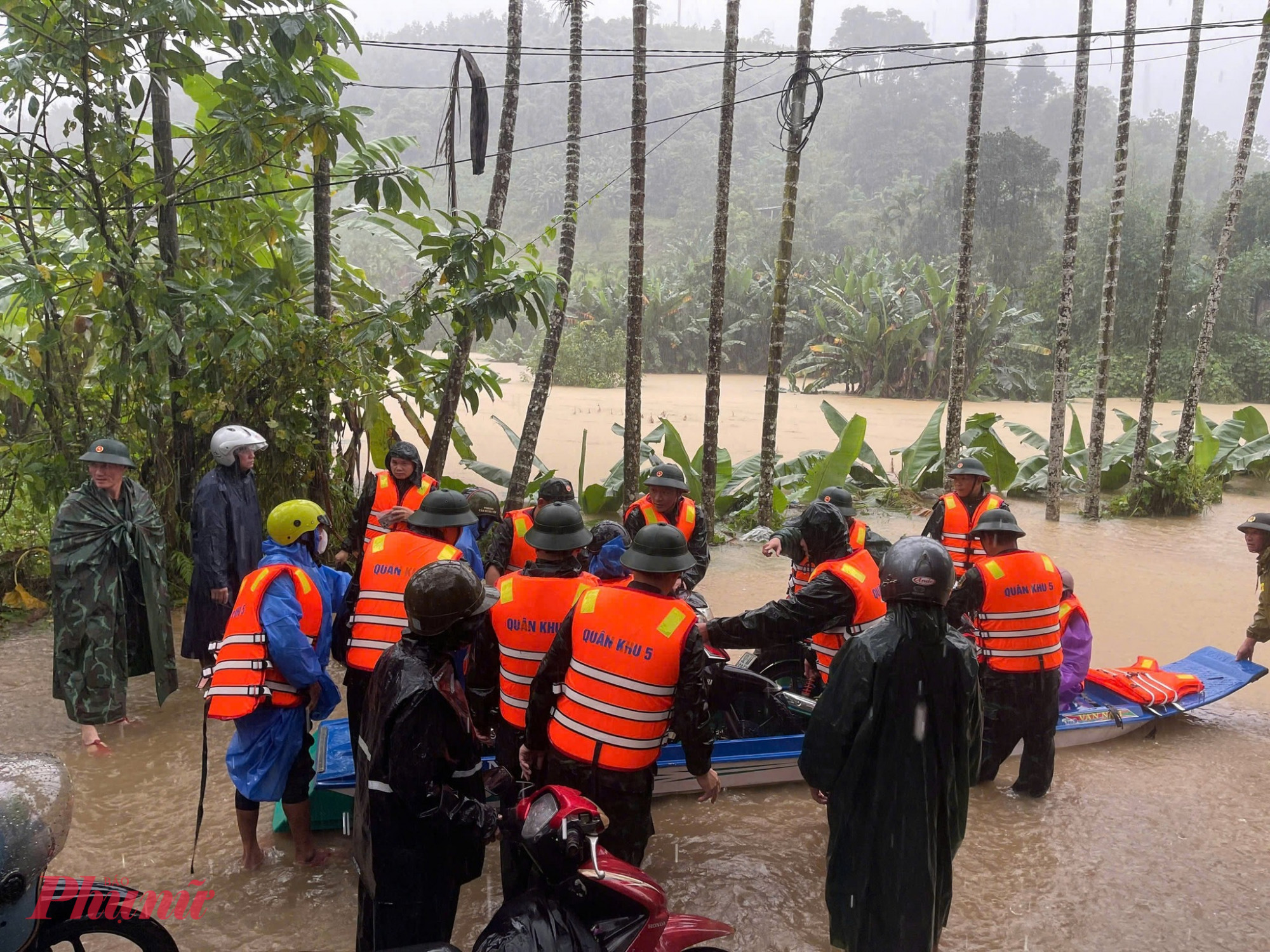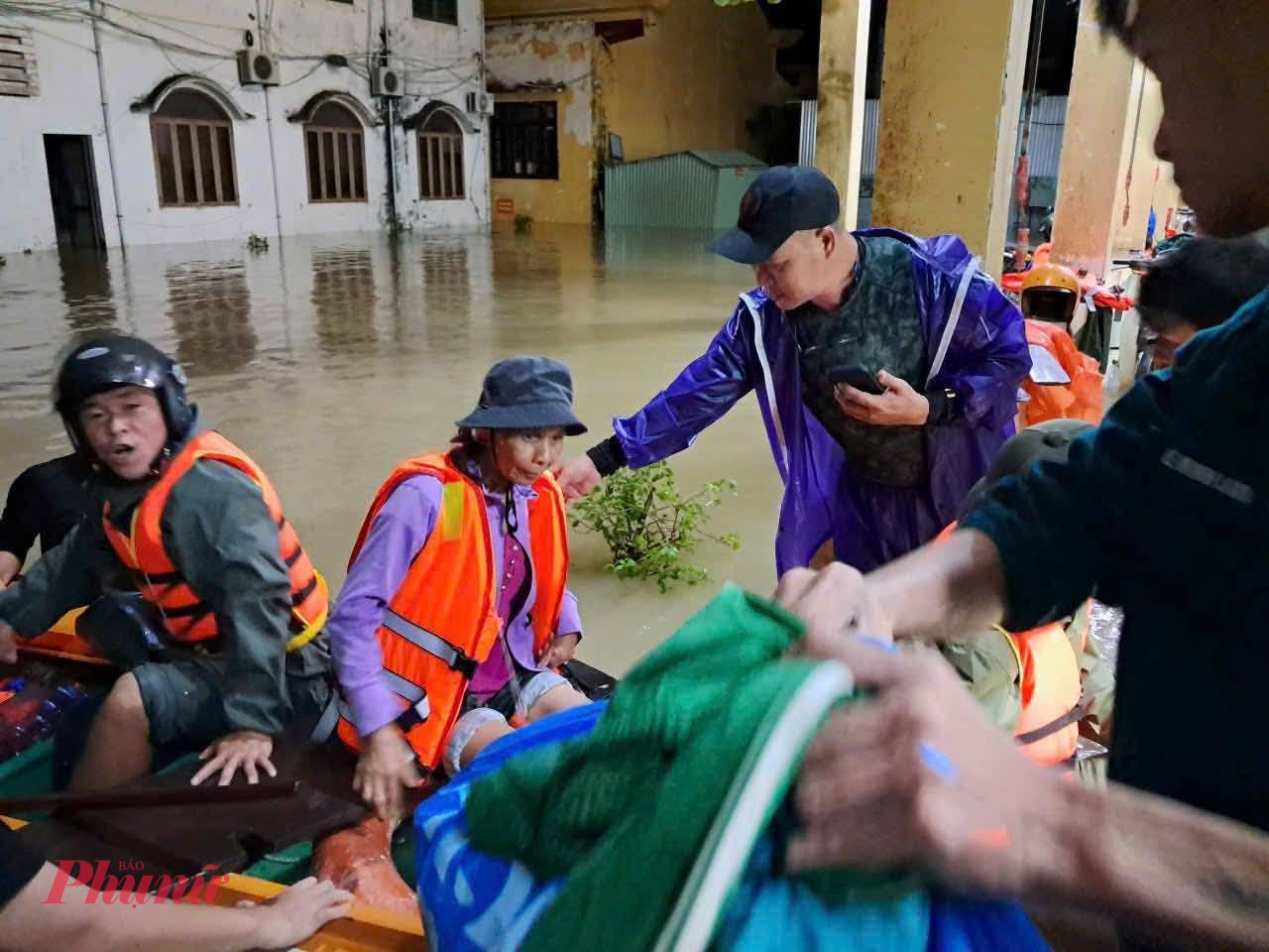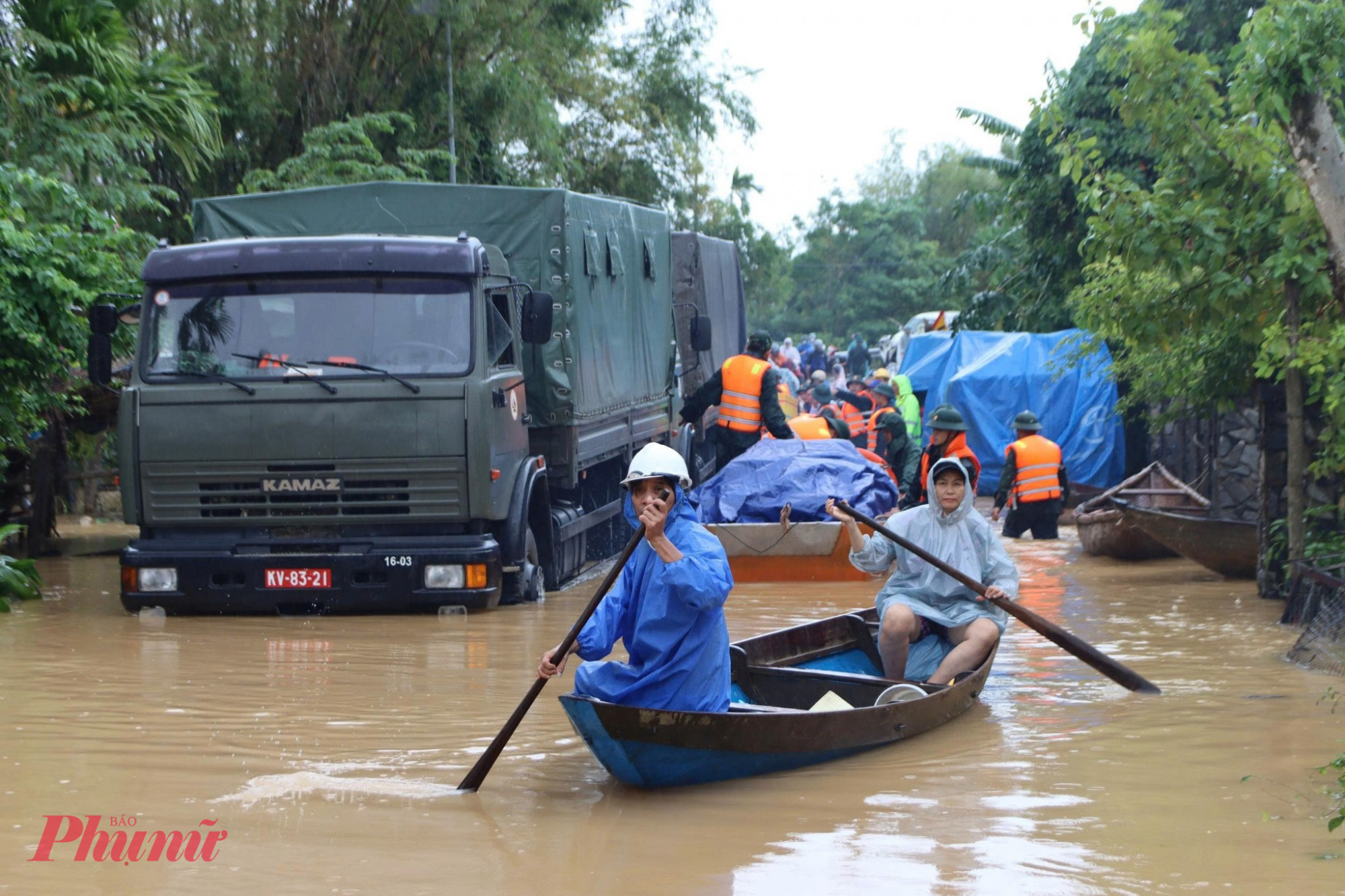 4 người đang di chuyển giữa dòng nước lũ không may bị nước cuốn trôi, lãnh đạo phường Hóa Châu đã sử dụng phương tiện tại chỗ ứng cứu kịp thời.