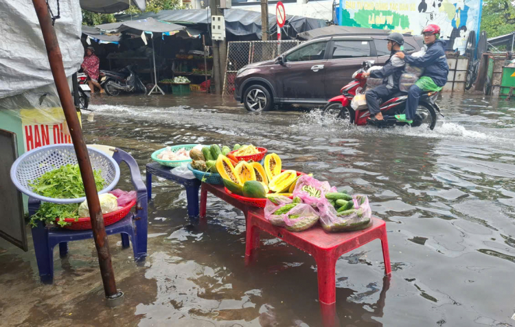 Còn chợ Tuy Hòa nằm phía đường Lê Lợi, nước ngập nửa bàn bán đu đủ, bí, mướp… Bà Nguyễn Thị Liên, người bán hàng cho hay: Góc chợ Tuy Hòa, từ ngã tư Lê Lợi - Ngô Quyền ngập kéo dài xuống ngã tư Lê Lợi - Lương Văn Chánh. "Tôi bán rau, củ, quả phải kê lên cao để khỏi ngập nước", bà nói.