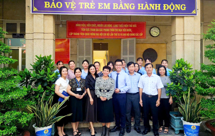 | Thạc sĩ Nguyễn Thị Mỹ Hạnh (hàng đầu, thứ tư từ trái sang) tập huấn kỹ năng chăm sóc giáo dục trẻ cho cán bộ, nhân viên Làng Thiếu niên Thủ Đức - Ảnh do nhân vật cung cấp |