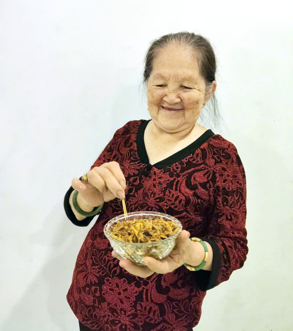 Mẹ và món chuối ngào gừng - Ảnh do tác giả cung cấp
