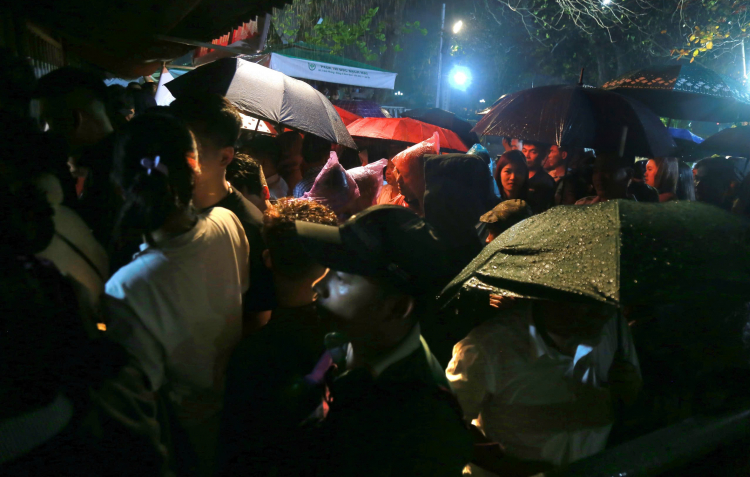 PNO - Đông đảo người dân xếp hàng, đội mưa chờ phát ấn lộc tại đền Trần (phường Nam Định, tỉnh Ninh Bình).