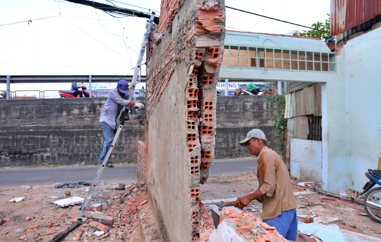 | Theo các đơn vị thi công, trong tuần tới sẽ có thêm nhiều hộ dân từ khu vực cầu Vĩnh Bình đến giao lộ cầu vượt Bình Phước tiếp tục tháo dỡ nhà. |