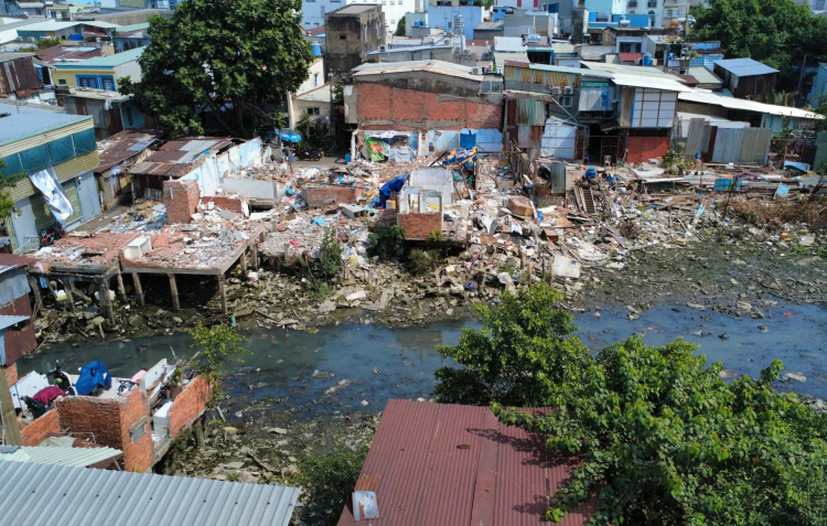 | Nhiều căn nhà đã tháo dỡ, di dời trước Tết nhường đây cho việc cải tạo rạch Xuyên Tâm khiến bà Nhung cũng bồn chồn. |
