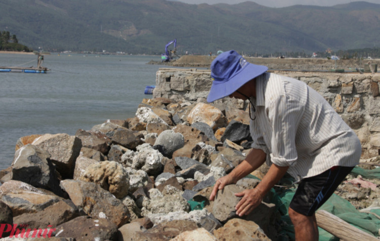 Cách đó không xa, cụ Lê Văn Phấn (sinh năm 1946) cùng con cháu đang dựng lại từng chiếc lồng. Cụ cho hay: “Trước lũ, gia đình tôi nuôi khoảng 100 lồng, với hơn 16.000 con tôm hùm, dự kiến thu hoạch cuối năm. Thế nhưng, mưa bão đến, mọi thứ bị cuốn trôi theo dòng nước. Thiệt hại hàng tỉ đồng, nhưng giờ không thể ngồi nhìn mãi. Còn sức là còn làm, các con của tôi đang ráng khôi phục lại lồng bè để nuôi tôm và vực lại kế sinh nhai”.