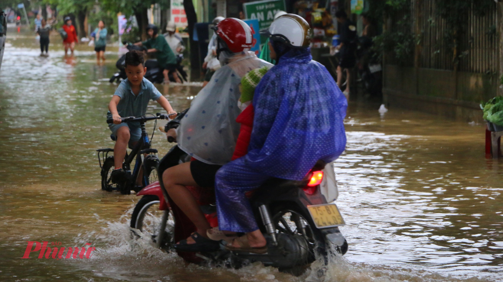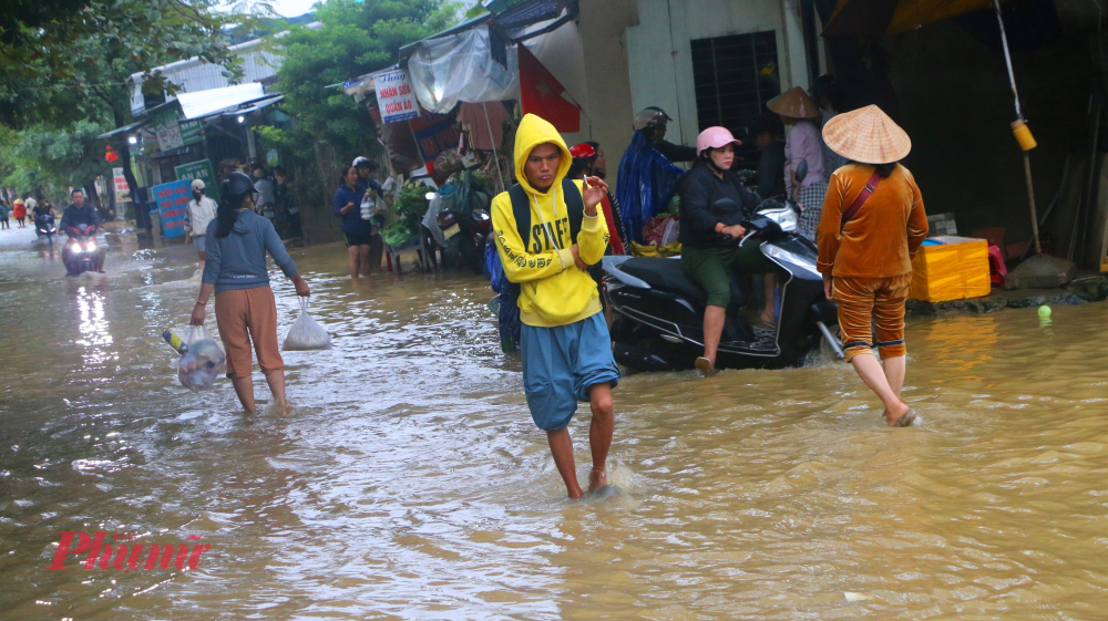 | Từ sáng ngày 17/11 nước lũ đã cô lập các lối đi hướng về phía cuối đường Nguyễn Lộ Trạch đoạn qua làng Vân Dương |
